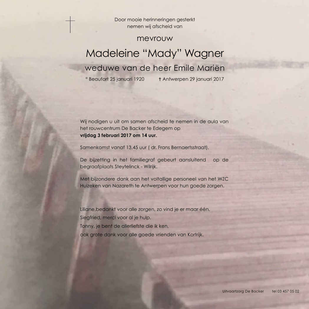 Overleden te Antwerpen (2000) op zondag 29 januari 2017 op 97-jarige leeftijd