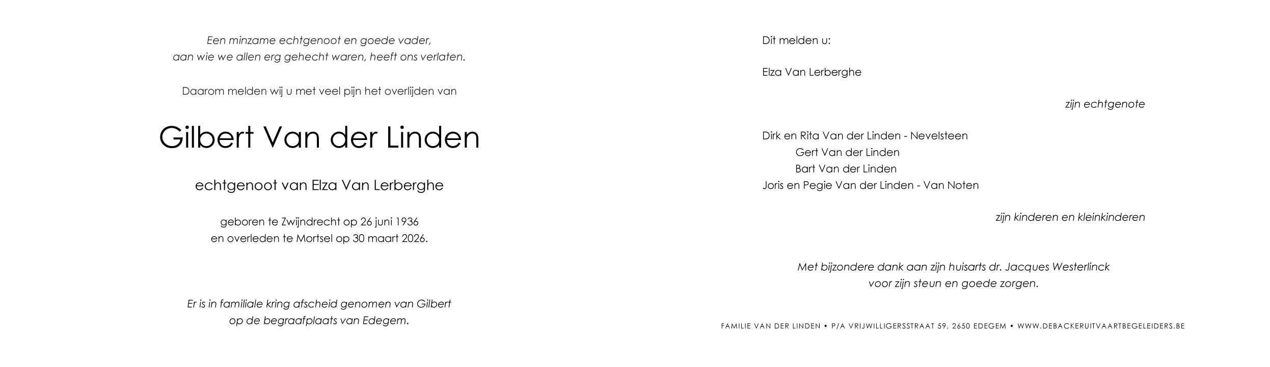 Echtgenoot van Mevrouw Elza Van Lerberghe