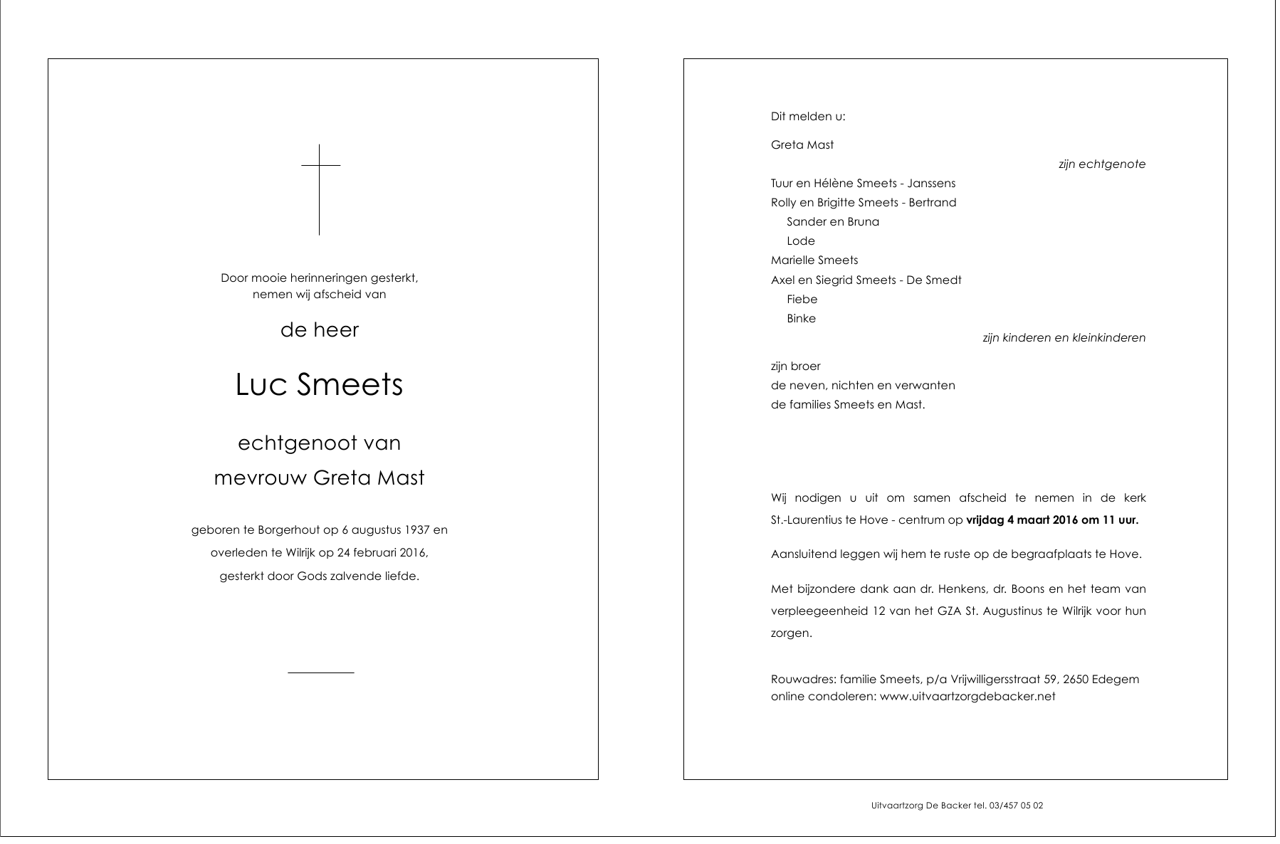 Overleden te Wilrijk (Antwerpen) (2610) op woensdag 24 februari 2016 op 78-jarige leeftijd
