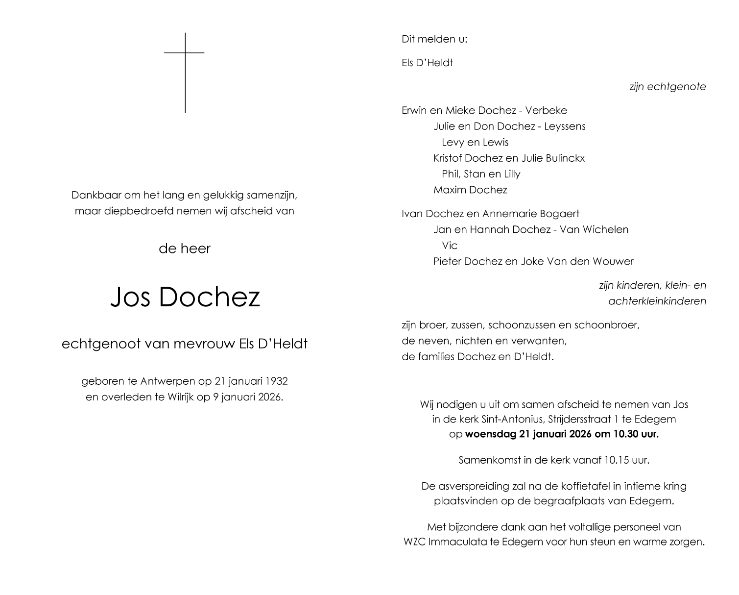 Overleden te Wilrijk (Antwerpen) (2610) op vrijdag 9 januari 2026 op 93-jarige leeftijd