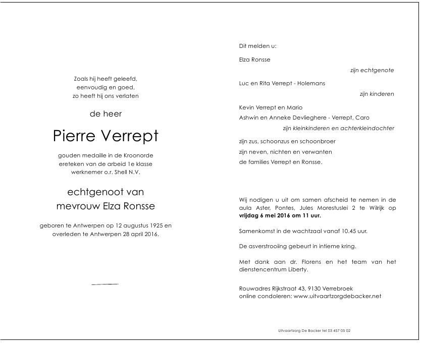 Overleden te Antwerpen (2020) op donderdag 28 april 2016 op 90-jarige leeftijd