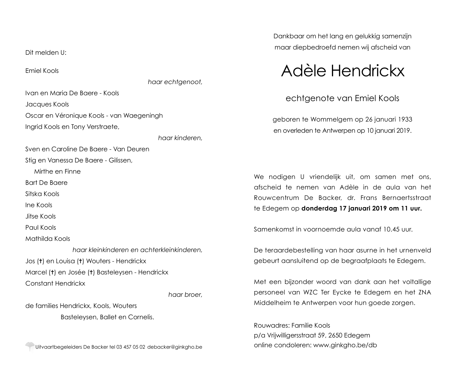 Overleden te Antwerpen (2020) op donderdag 10 januari 2019 op 85-jarige leeftijd