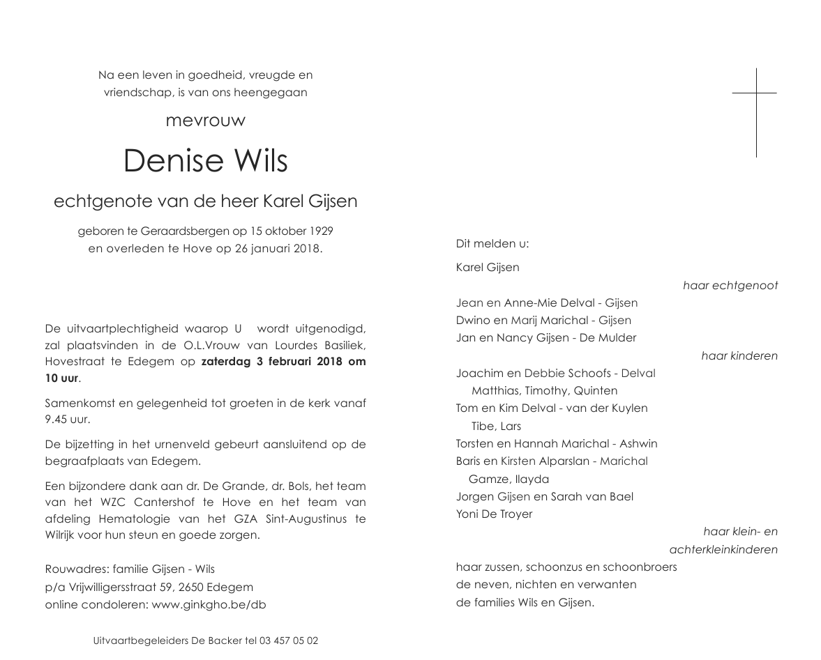 Overleden te Hove (2540) op vrijdag 26 januari 2018 op 88-jarige leeftijd
