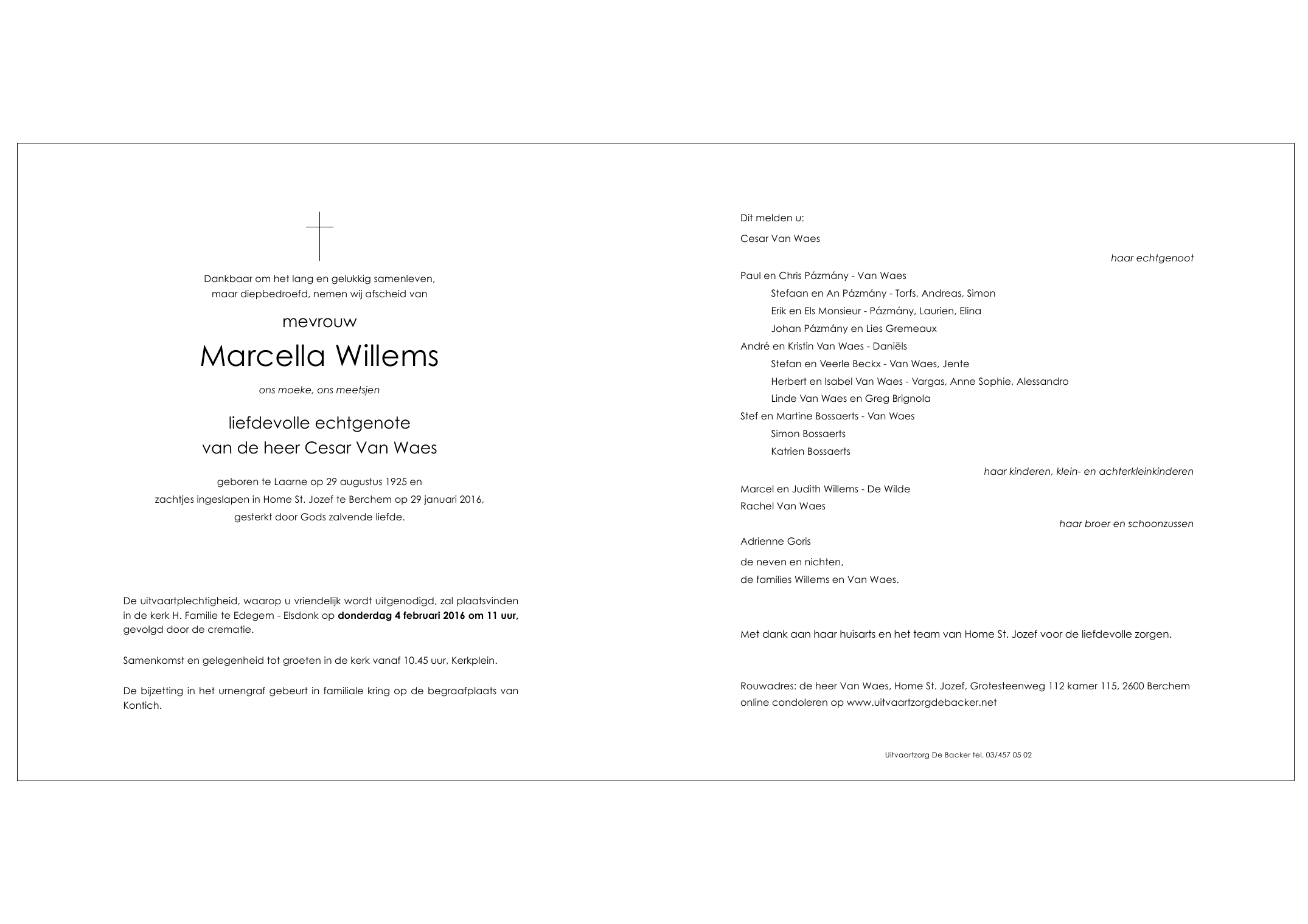Overleden te Berchem (Antwerpen) (2600) op vrijdag 29 januari 2016 op 90-jarige leeftijd