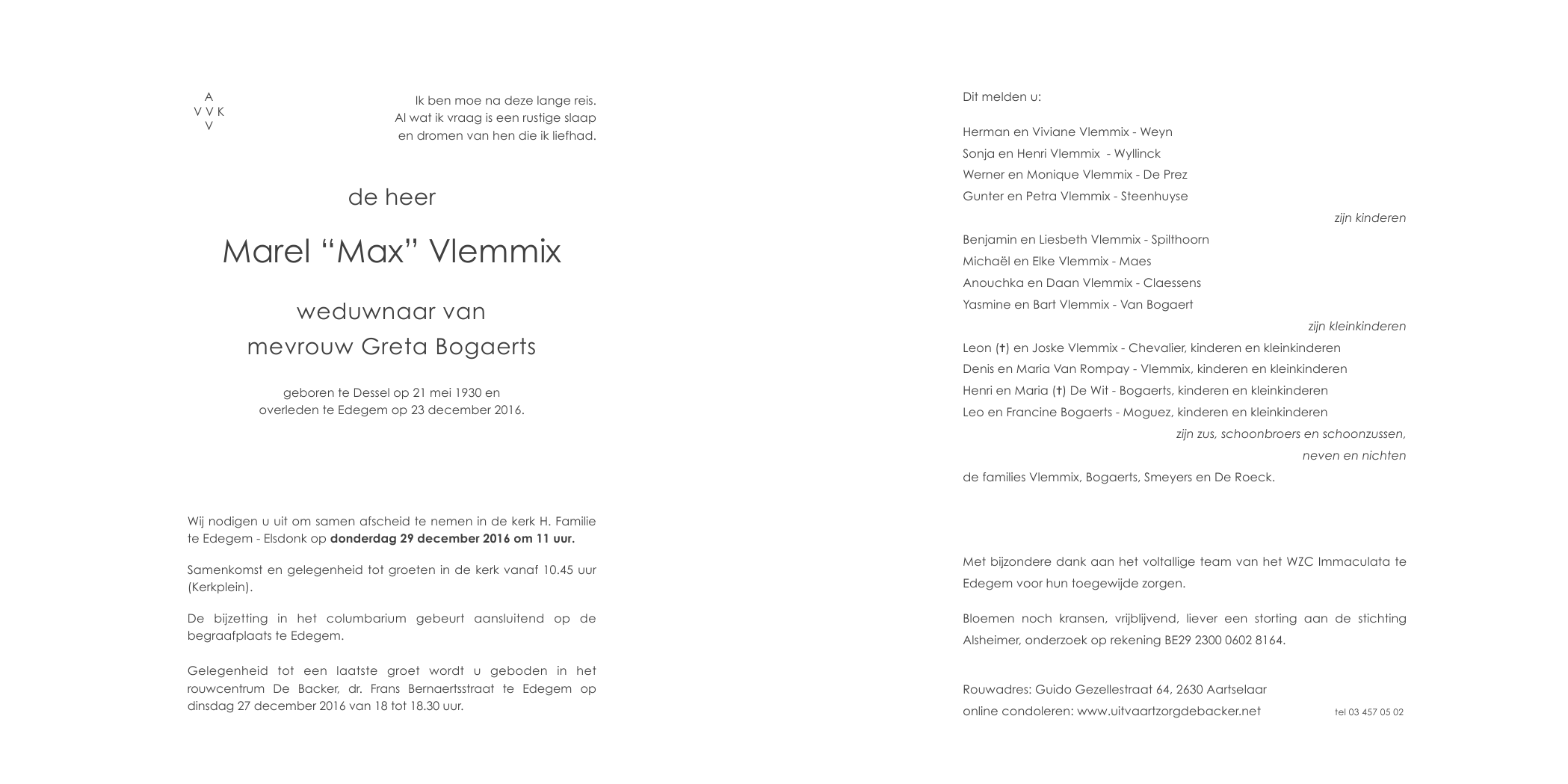 Overleden te Edegem (2650) op vrijdag 23 december 2016 op 86-jarige leeftijd
