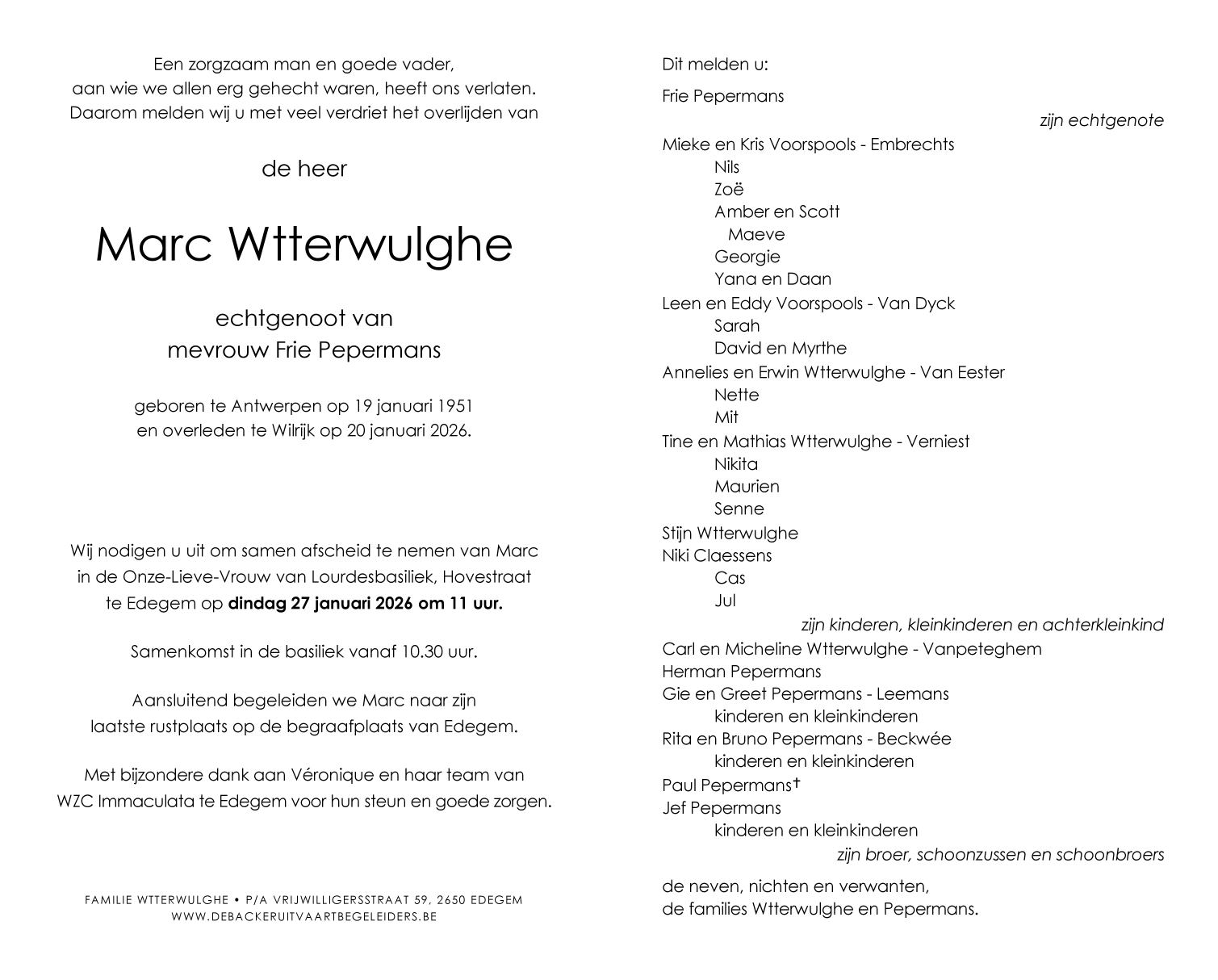 Overleden te Wilrijk (Antwerpen) (2610) op dinsdag 20 januari 2026 op 75-jarige leeftijd