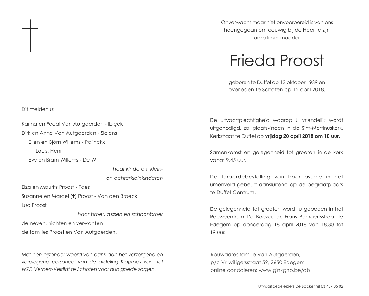 mevrouw Frieda Proost