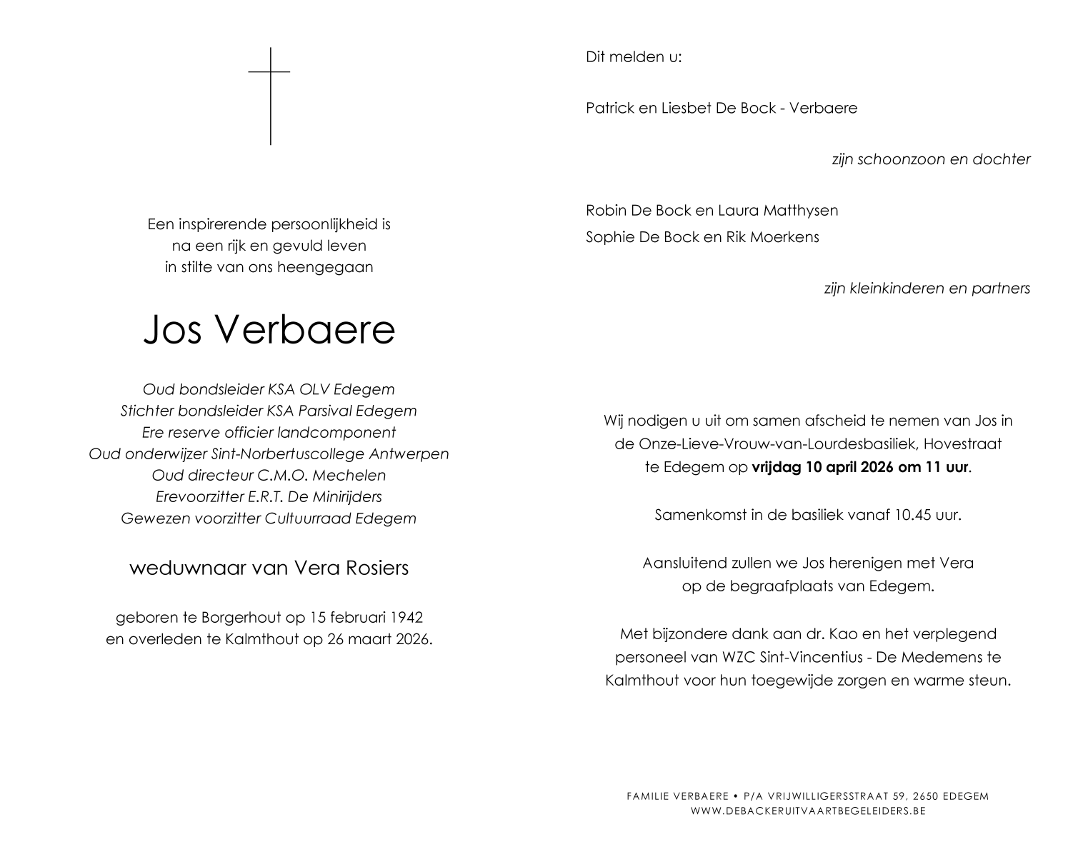 Overleden te Kalmthout (2920) op donderdag 26 maart 2026 op 84-jarige leeftijd
