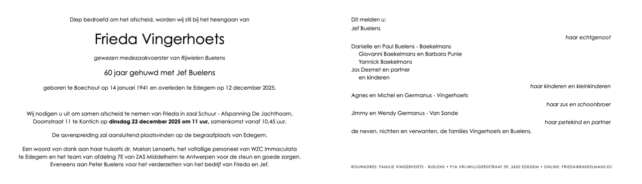 Overleden te Edegem (2650) op vrijdag 12 december 2025 op 84-jarige leeftijd