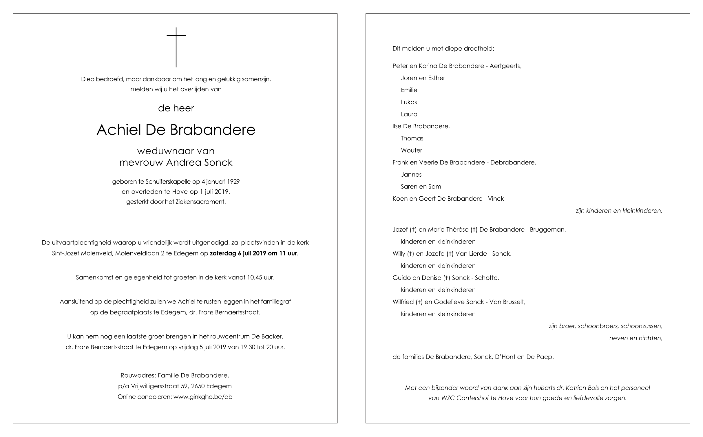 Overleden te Hove (2540) op maandag 1 juli 2019 op 90-jarige leeftijd