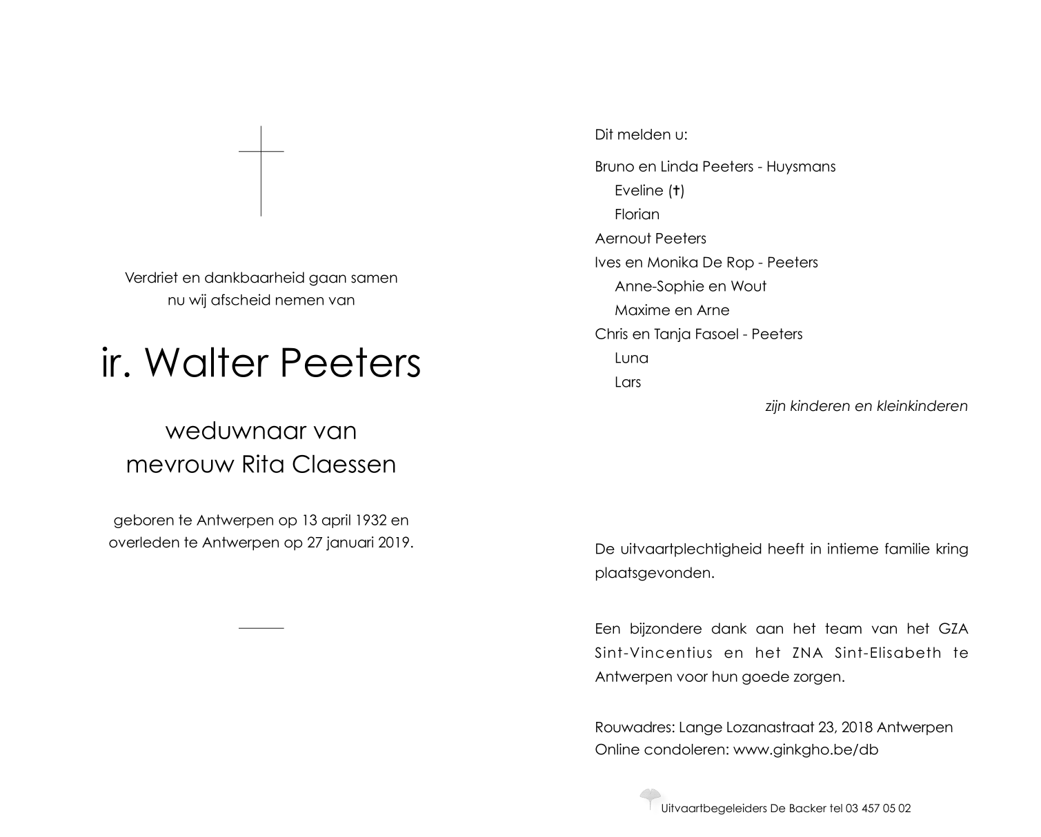 Overleden te Antwerpen (2000) op zondag 27 januari 2019 op 86-jarige leeftijd