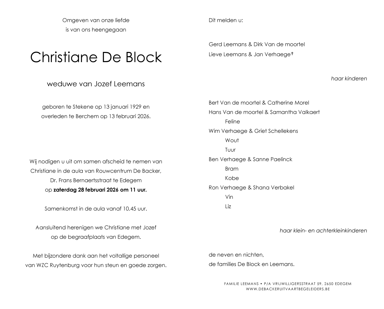 Overleden te Antwerpen (2060) op vrijdag 13 februari 2026 op 97-jarige leeftijd