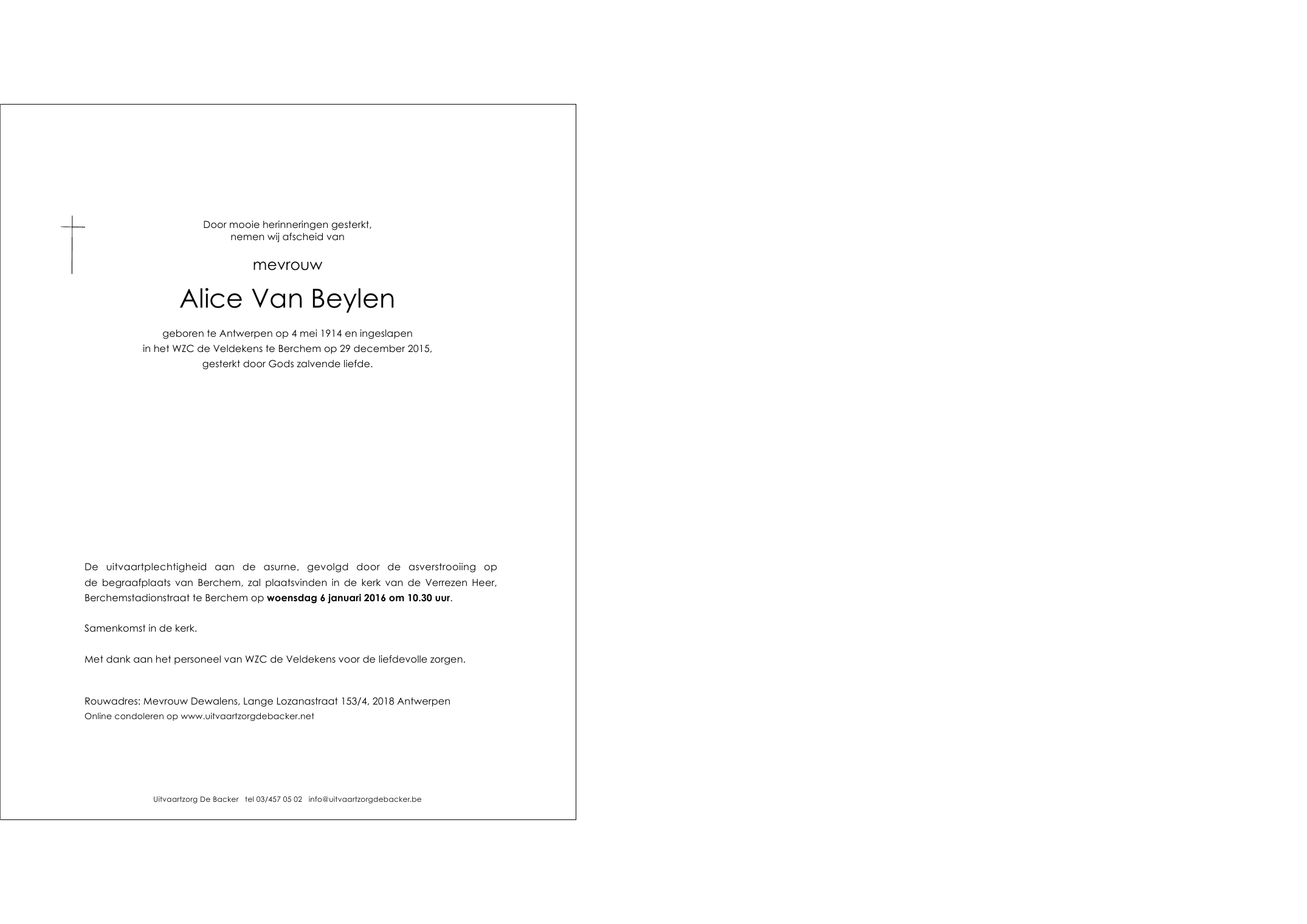 mevrouw Alice Van Beylen